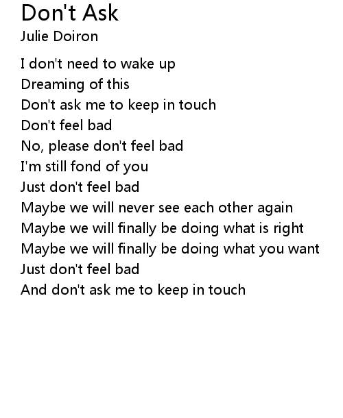 | Don't ask me to keep in touch | |