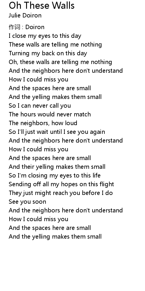 | Song | Oh These Walls |