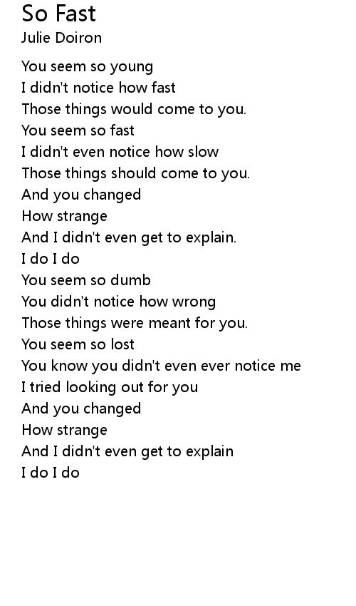 | You seem so fast | |