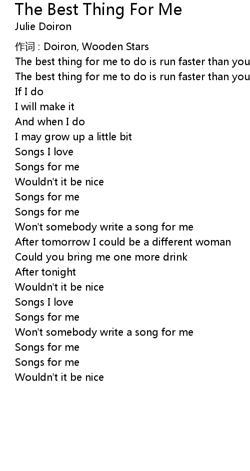 | Song | The Best Thing For Me |