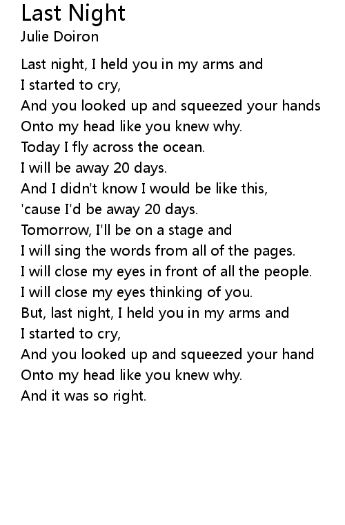 But, last night, I held you in my arms and |