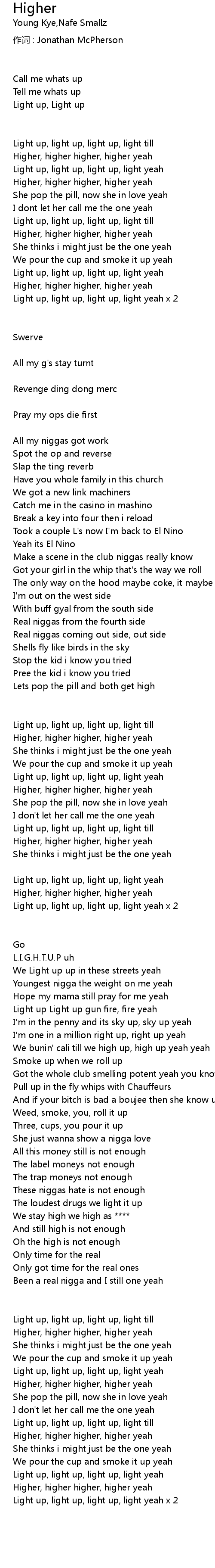 | Higher, higher higher, higher yeah | |