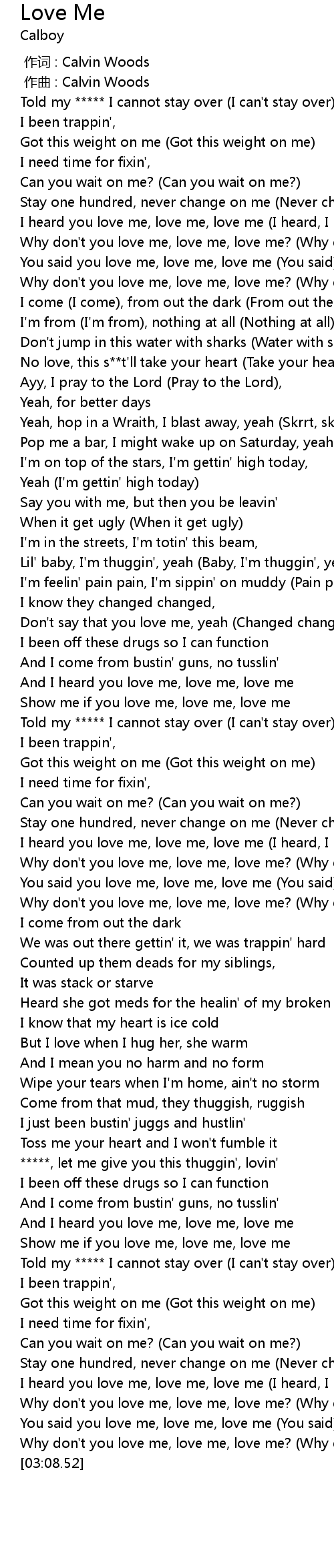| [02:59.11] | Why don' t you love me, love me, love me? Why don' t? |