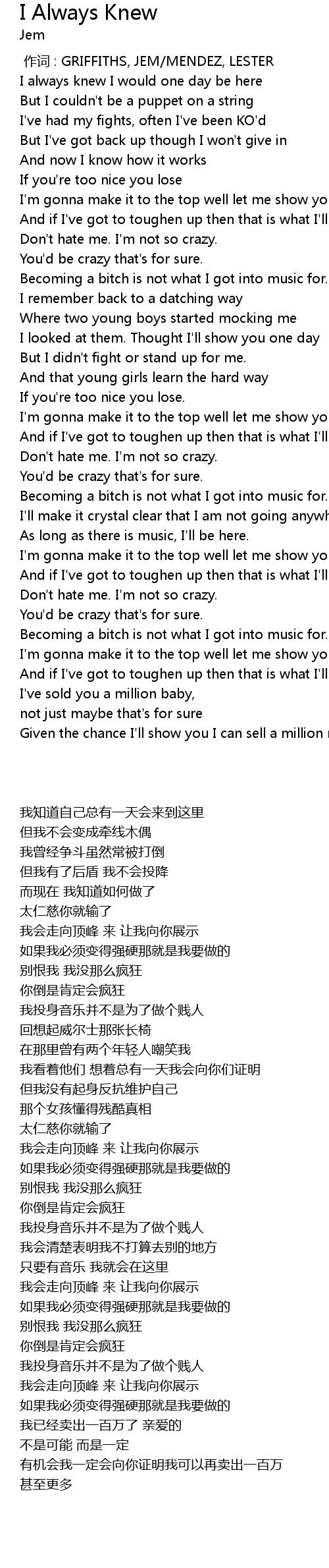 | Song | I Always Knew |