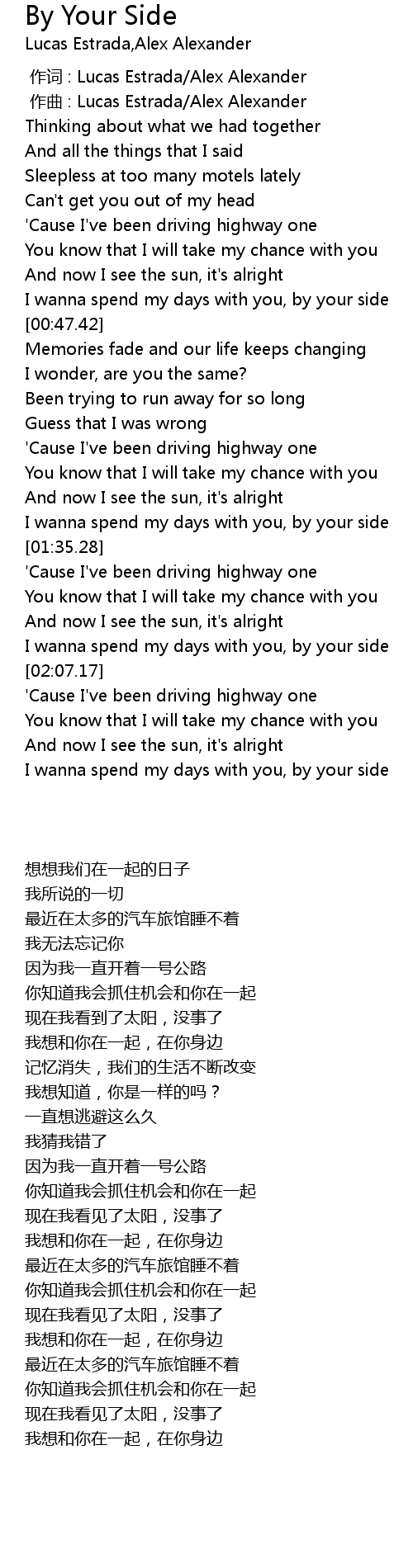 | [00:42.56] | I wanna spend my days with you, by your side |