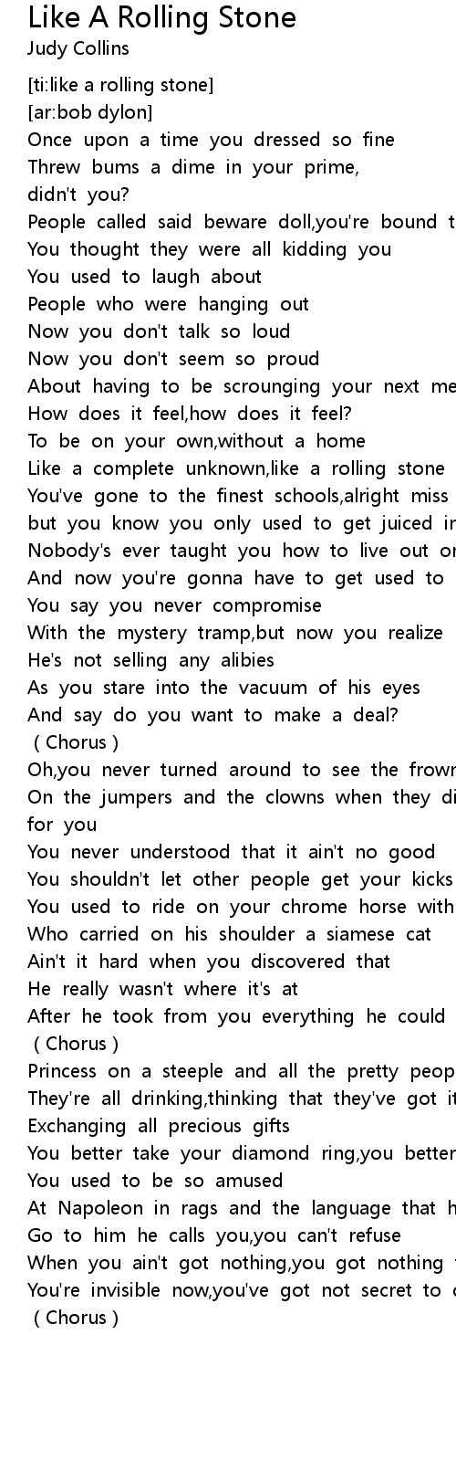 | [01:11.30] | Like a complete unknown, like a rolling stone |