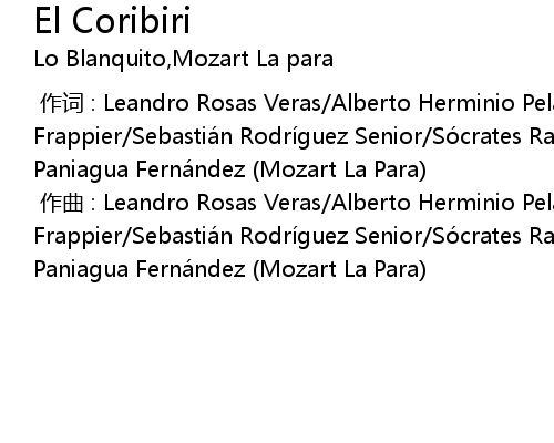 | [00:00.000] | 作曲 : Leandro Rosas Veras/Alberto Herminio Pelaez Frappier/Sebastián Rodríguez Senior/Sócrates Rafael Francis Puello/Erickson Paniagua Fernández (Mozart La Para) |