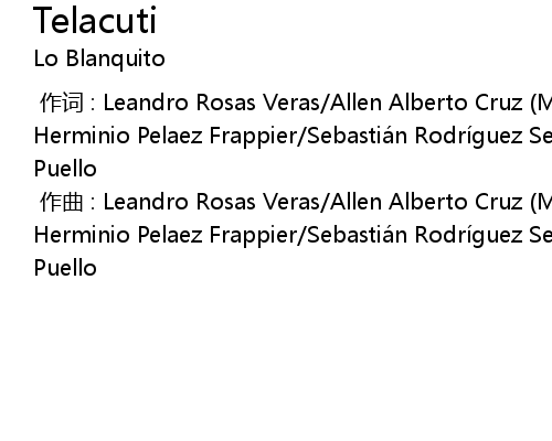 | [00:00.000] | 作曲 : Leandro Rosas Veras/Allen Alberto Cruz (Mute Cake)/Alberto Herminio Pelaez Frappier/Sebastián Rodríguez Senior/Sócrates Rafael Francis Puello |