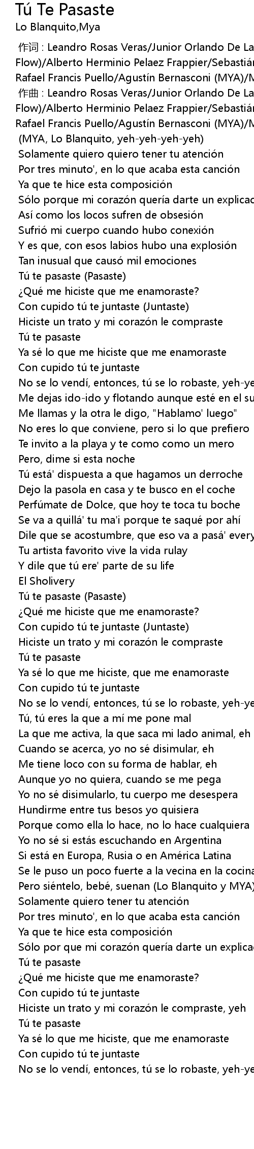 | [01:35.801] | Tú te pasaste (Pasaste) |