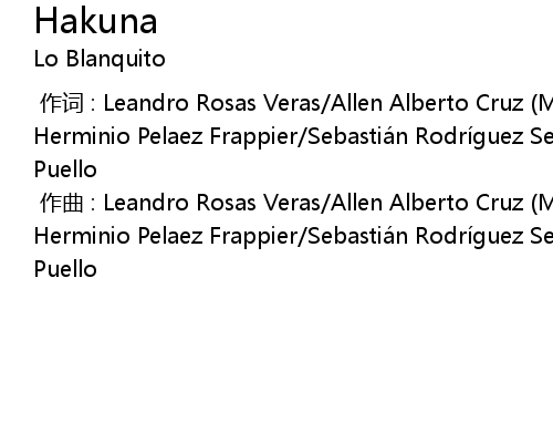 | [00:00.000] | 作曲 : Leandro Rosas Veras/Allen Alberto Cruz (Mute Cake)/Alberto Herminio Pelaez Frappier/Sebastián Rodríguez Senior/Sócrates Rafael Francis Puello |
