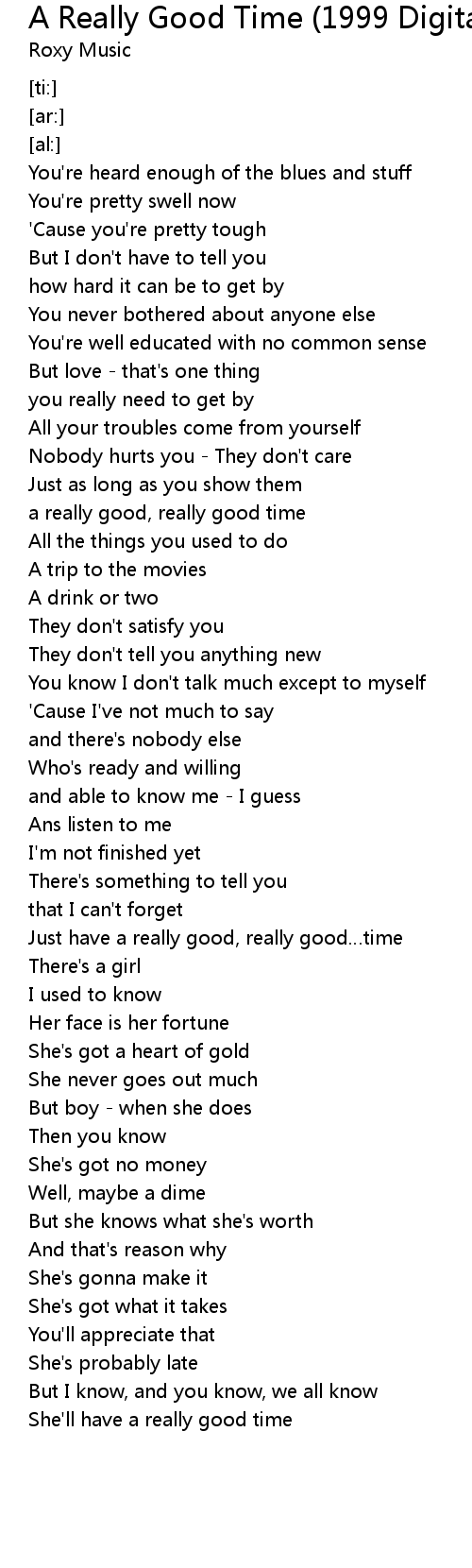 | [01:21.21] | a really good, really good time |