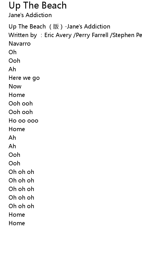 | [00:00.00] | Up The Beach ban Jane' s Addiction |