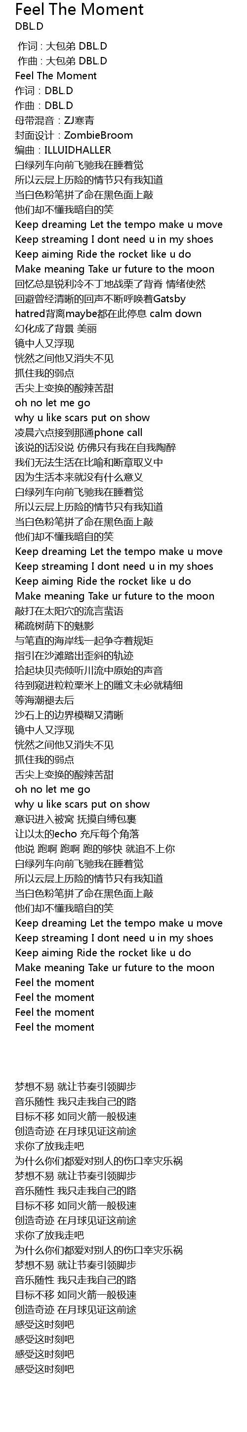 | [01:44.838] | Keep dreaming Let the tempo make u move |