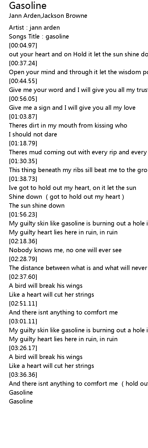 | [03:05.11] | My guilty skin like gasoline is burning out a hole in me |