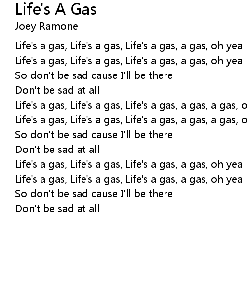 Life's a gas, Life's a gas, Life's a gas, a gas, a gas, oh yea |