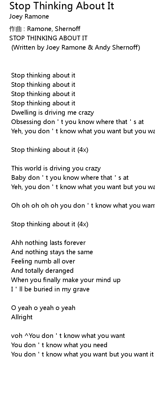 | STOP THINKING ABOUT IT | |
