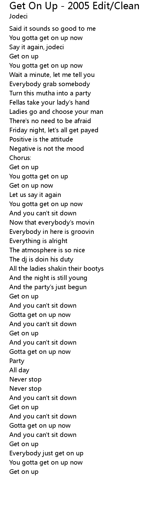 Get On Up - 2005 Edit/Clean Lyrics