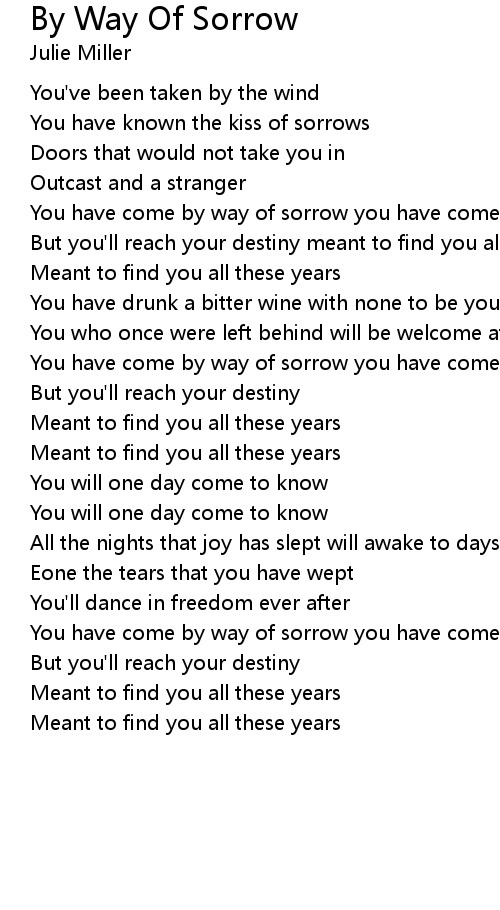 You have come by way of sorrow you have come by way of tears |