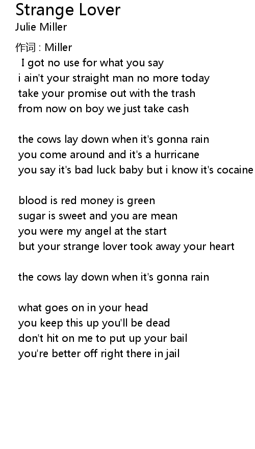 | you say it' s bad luck baby but i know it' s cocaine | |