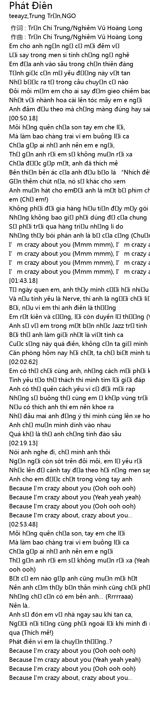 | [01:48.85] | B i, n u vì em thì anh i n là th ng |