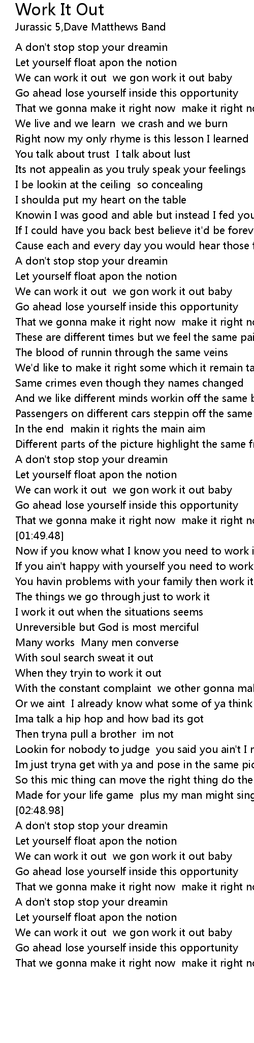 Work It Out Lyrics