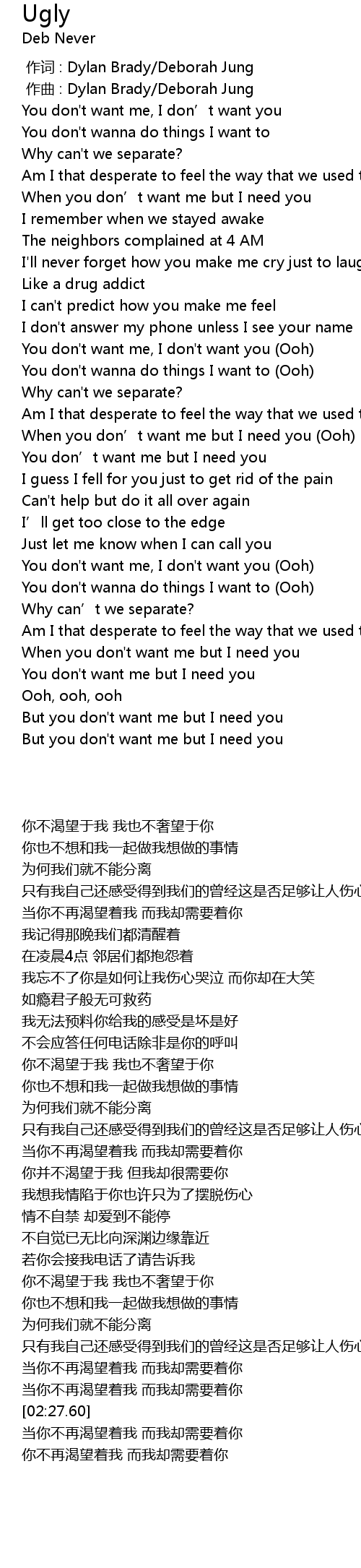 | [00:57.69] | You don' t want me, I don' t want you Ooh |