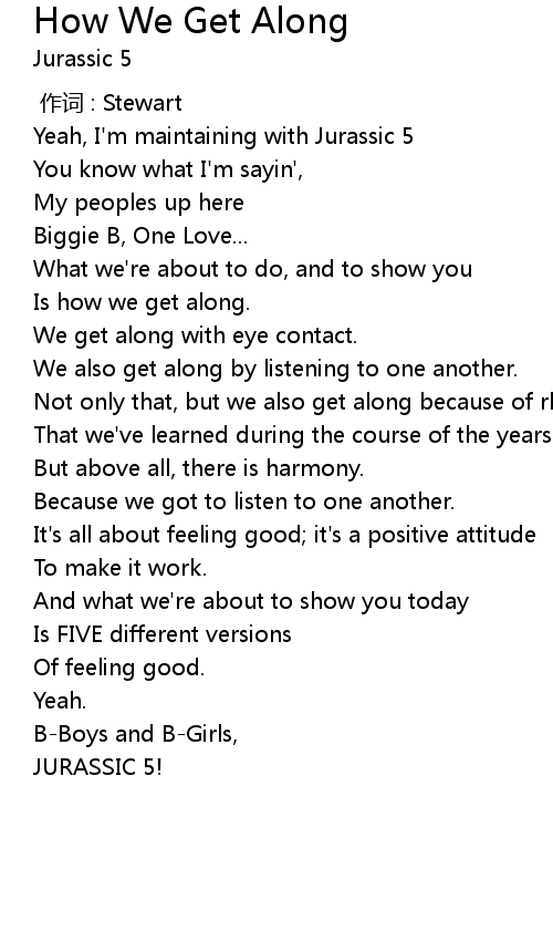 | [00:02.62] | Yeah, I' m maintaining with Jurassic 5 |