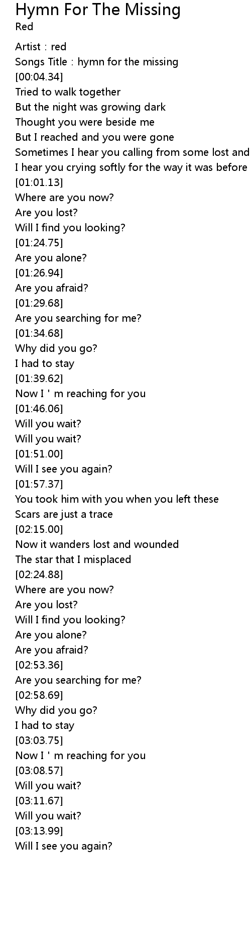 | [00:02.22] | Songs Title: hymn for the missing |