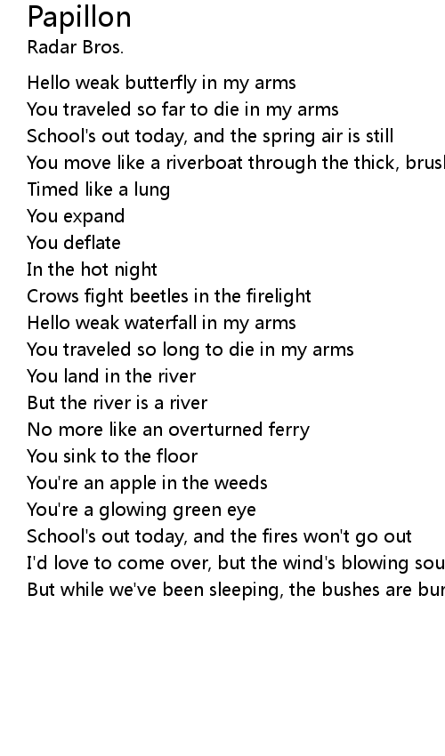 Hello weak butterfly in my arms |