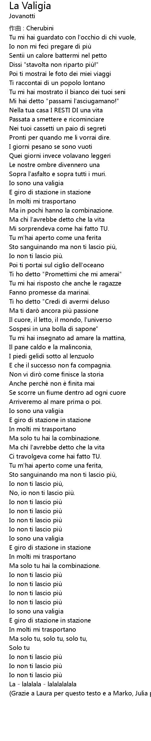| Song | La Valigia |