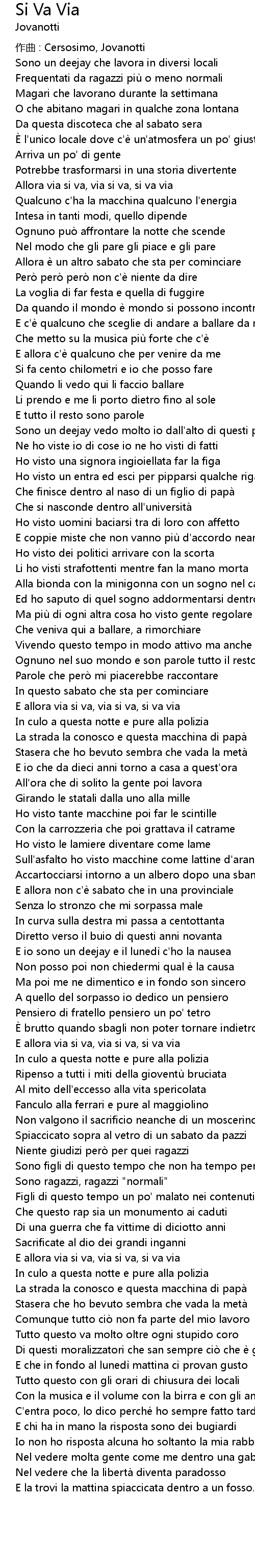 | zuo qu : Cersosimo, Jovanotti | |