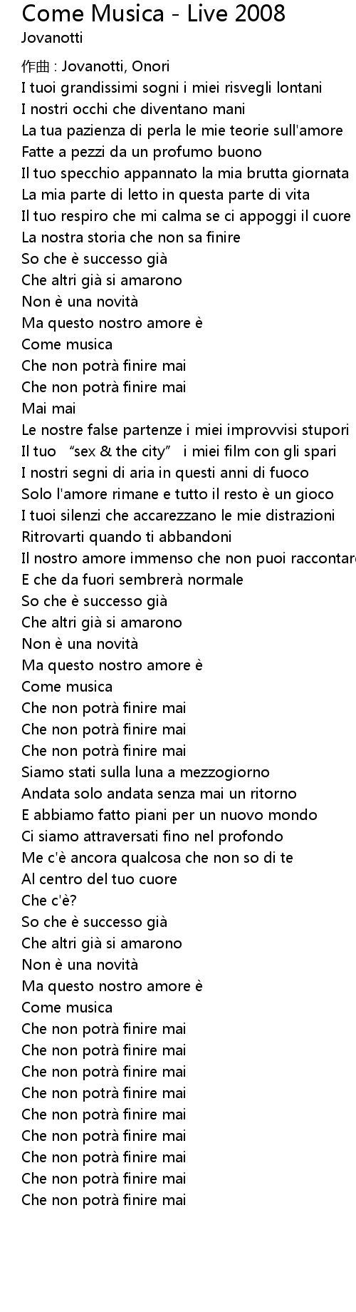 | Che non potra finire mai |