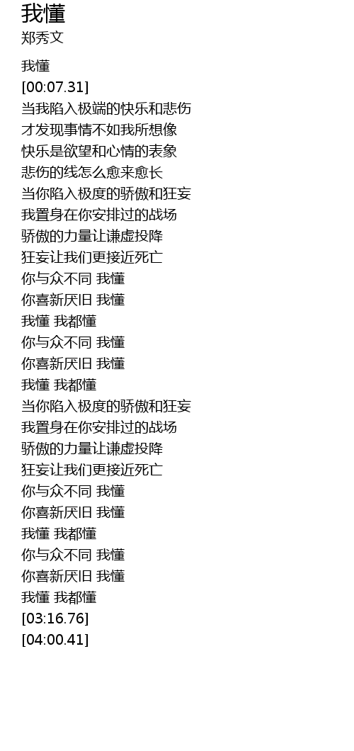 | [00:05.47] | 我懂 |