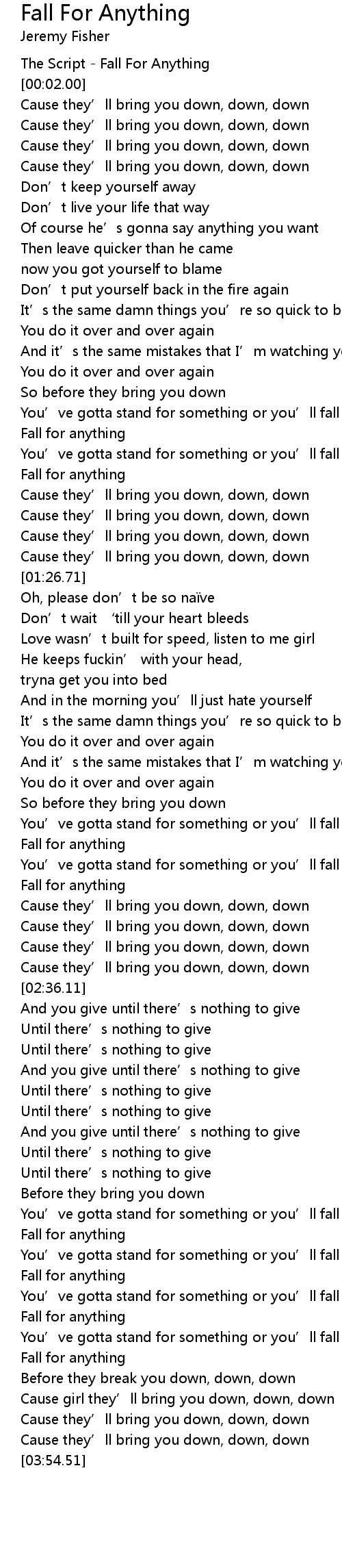 | [03:30.63] | You’ve gotta stand for something or you’ll fall for anything |