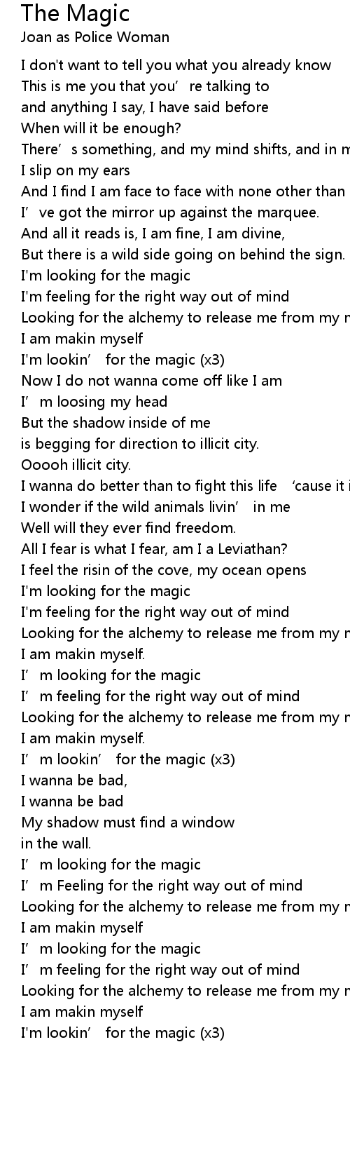 | I’m lookin’ for the magic (x3) | |