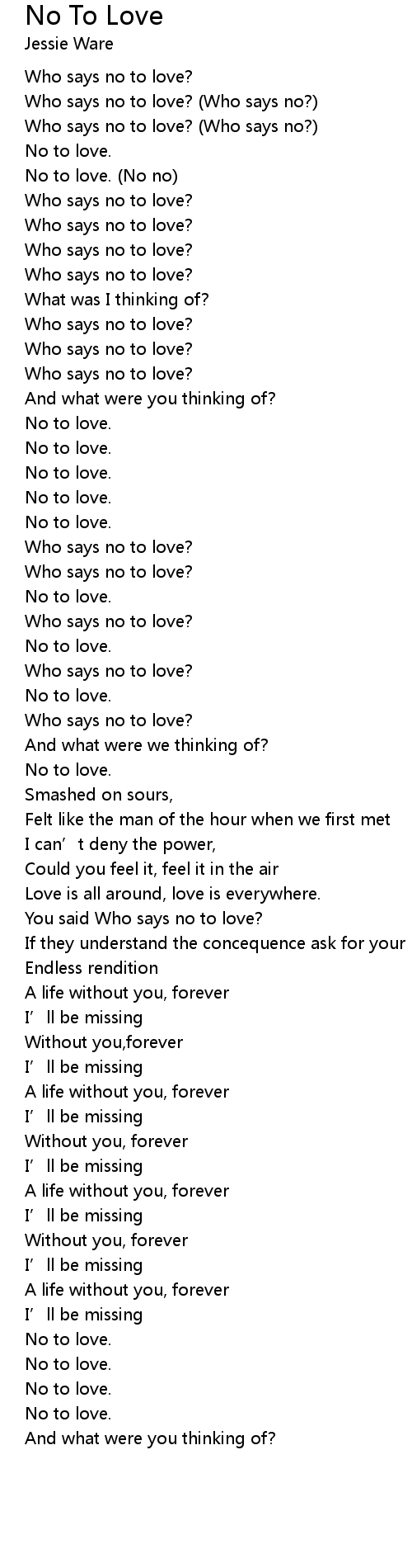 | Who says no to love? (Who says no?) | |