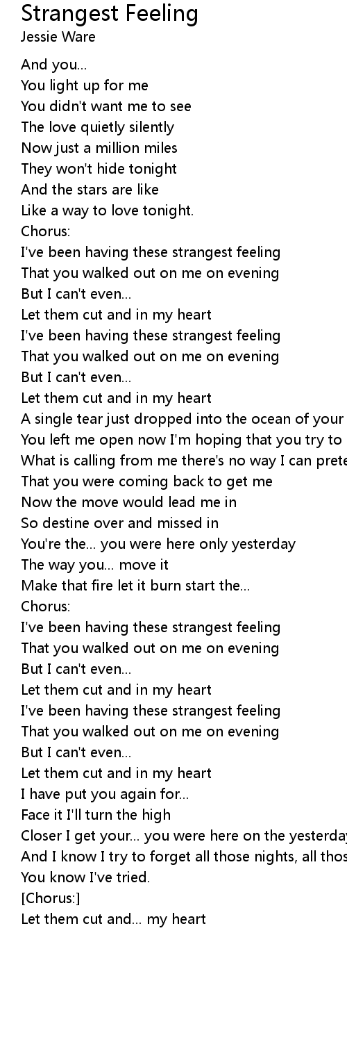 I've been having these strangest feeling |