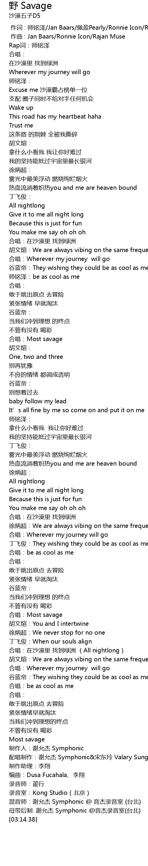 | [00:00.000] | 作词 : 师铭泽/Jan Baars/佩盈Pearly/Ronnie Icon/Rajan Muse |