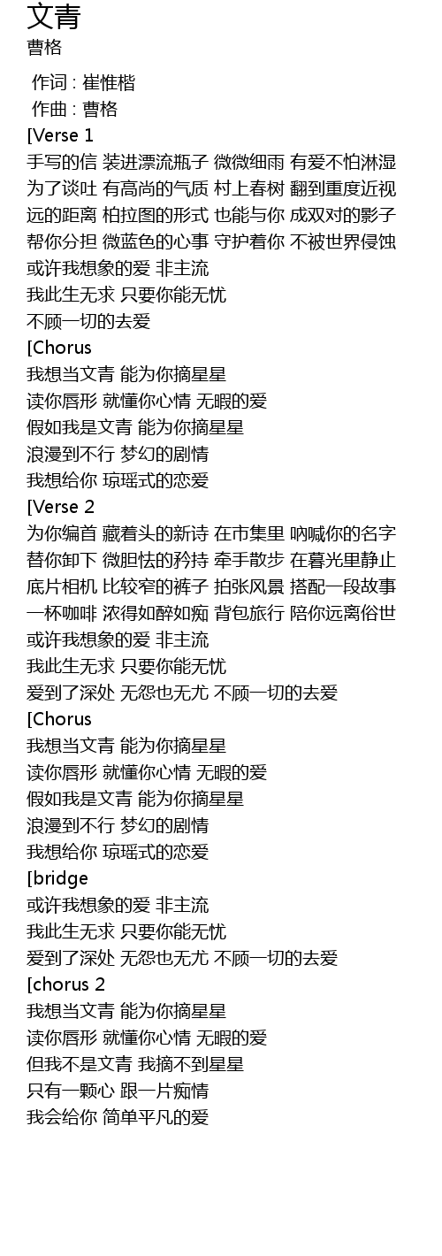 | [03:06.915] | 我想当文青 能为你摘星星 |