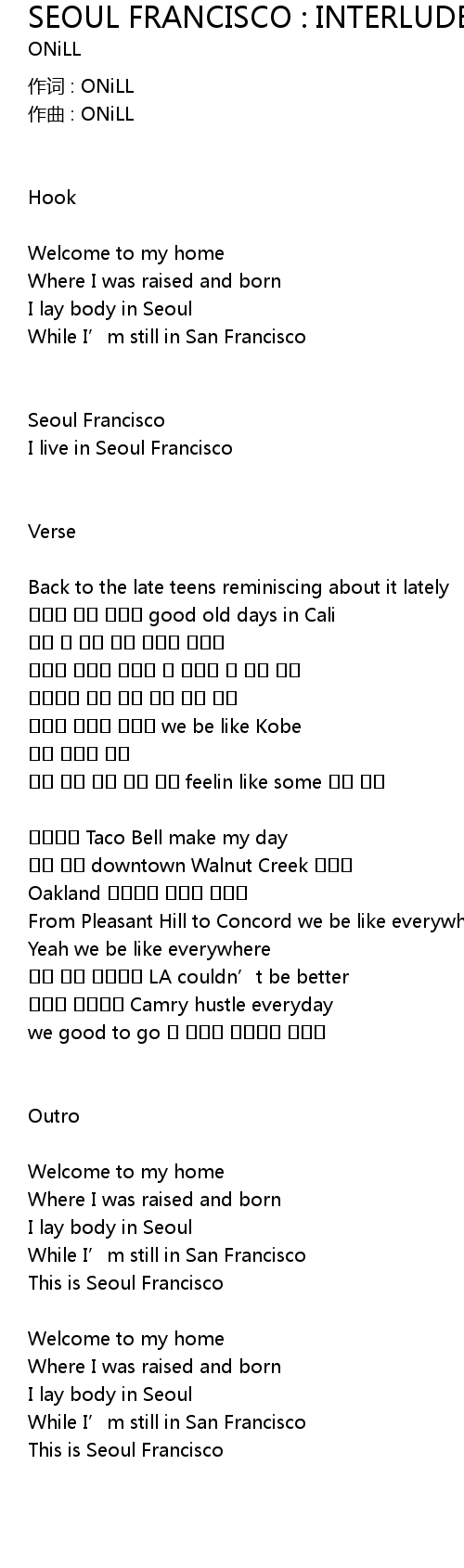 | Song | SEOUL FRANCISCO : INTERLUDE |