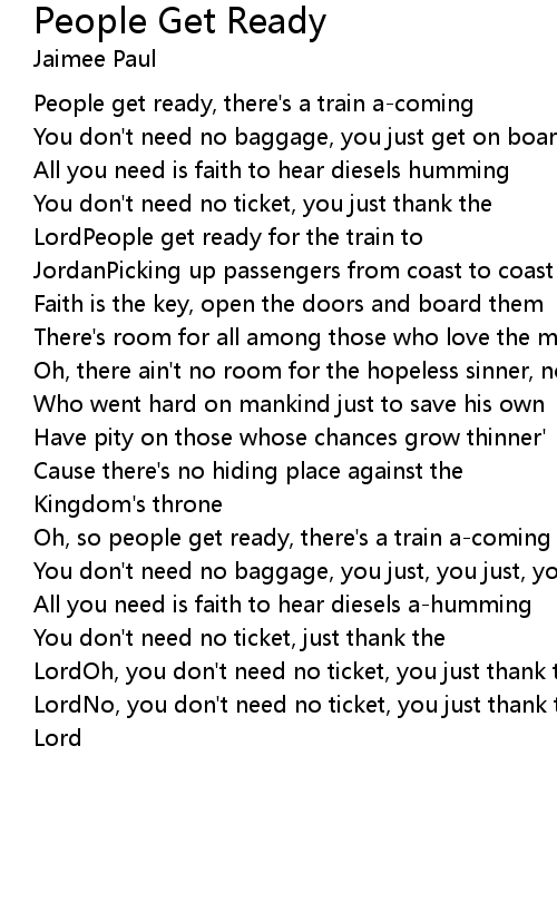 Oh, so people get ready, there's a train a-coming |