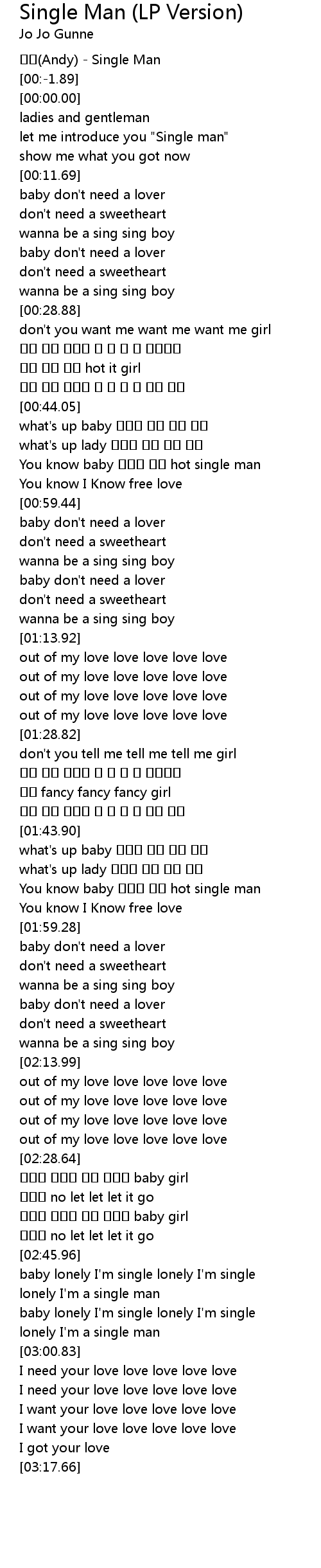| [00:52.33] | You know baby hot single man |