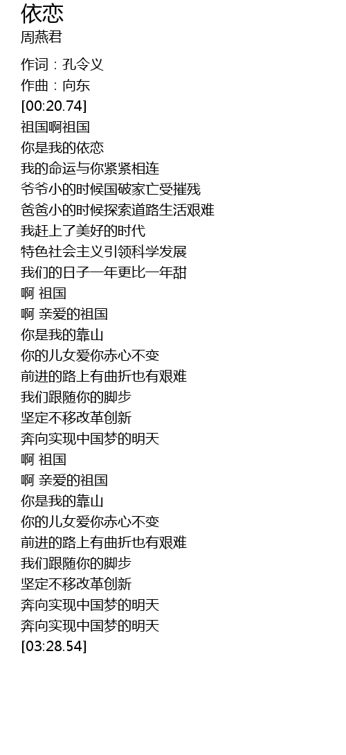 | [03:15.00] | 奔向实现中国梦的明天 |