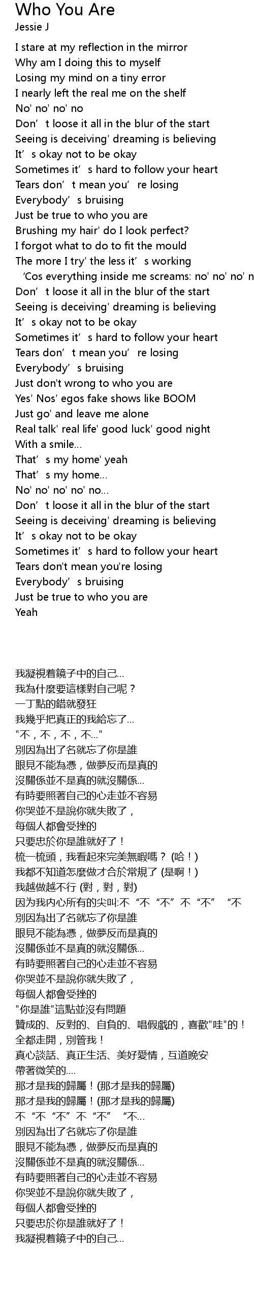 | [02:19.570] | Just don' t wrong to who you are |