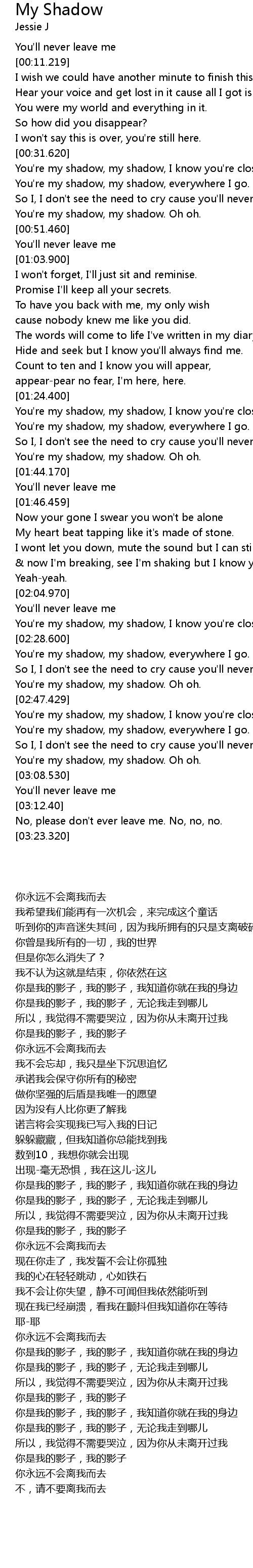 | [02:28.10] | You're my shadow, my shadow, I know you're close. |