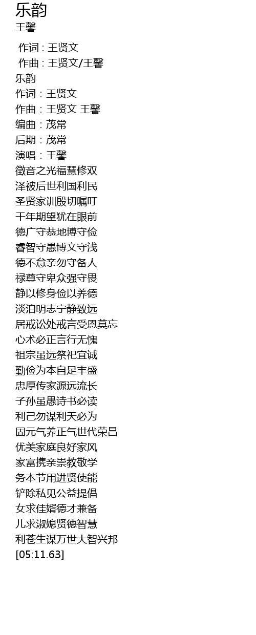 | [00:03.14] | 作曲:王贤文 王馨 |
