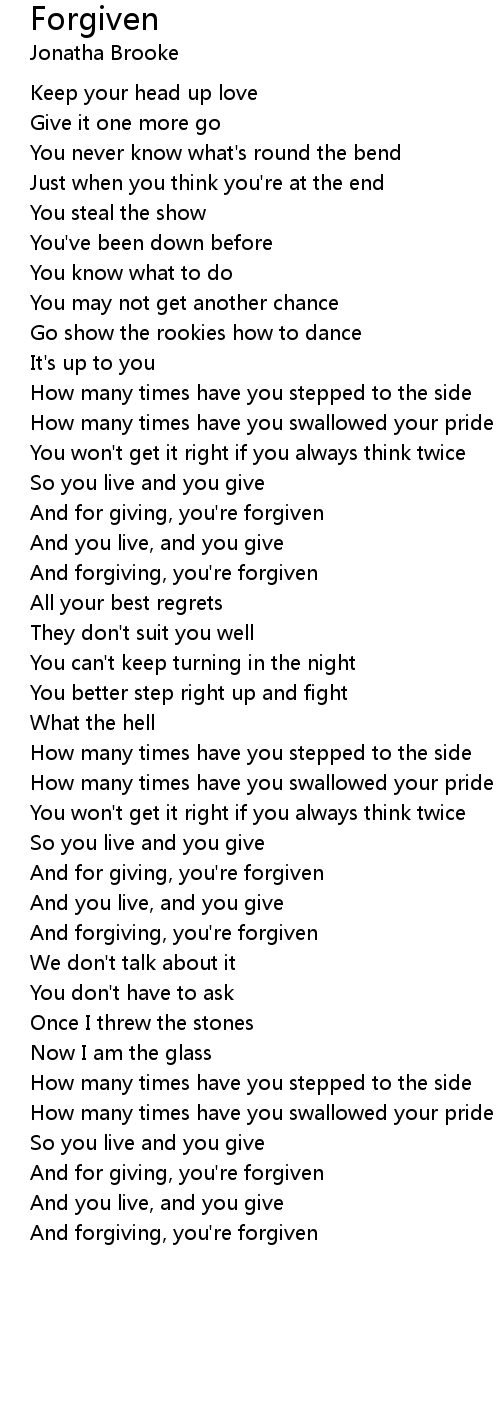 And for giving, you're forgiven |