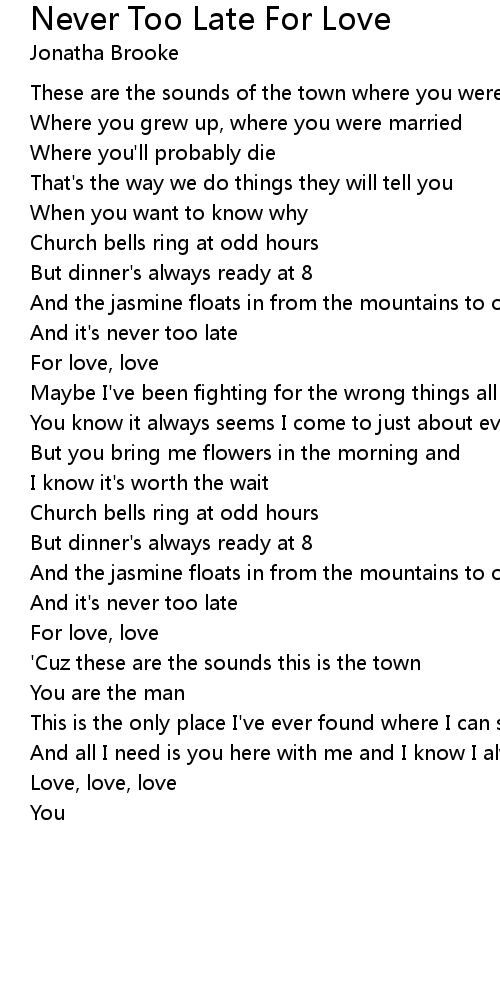 And it's never too late |