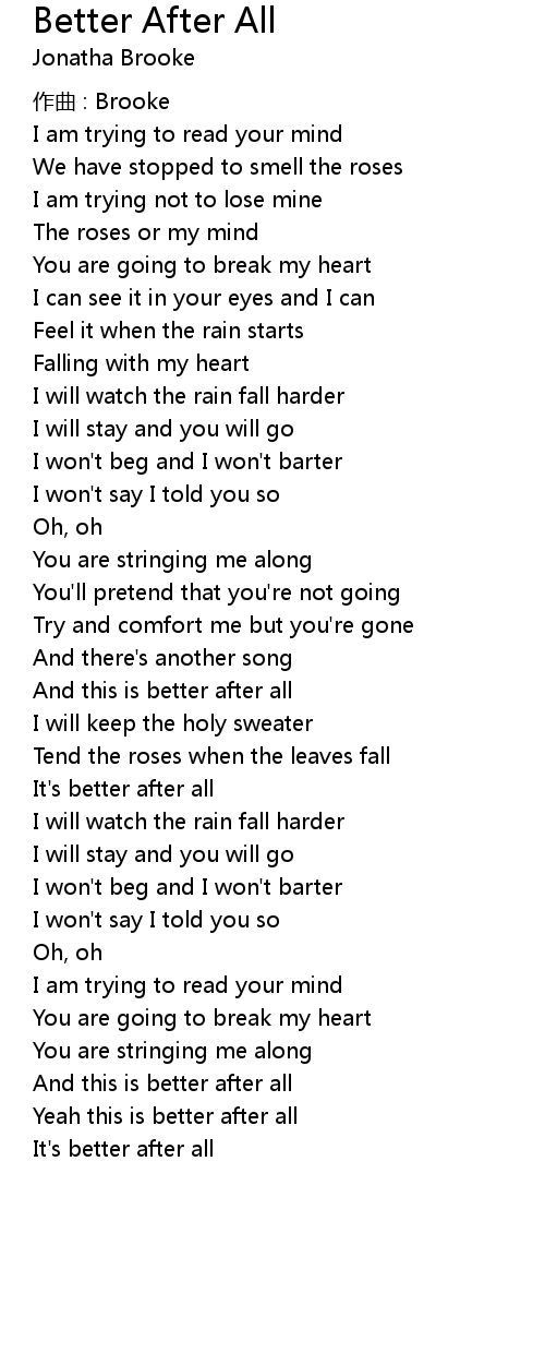 | Song | Better After All |