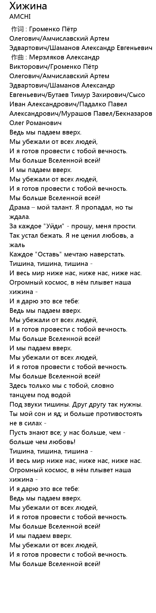 作词 : Громенко Пётр Олегович/Амчиславский Артем Эдвартович/Шаманов Александр Евгеньевич |